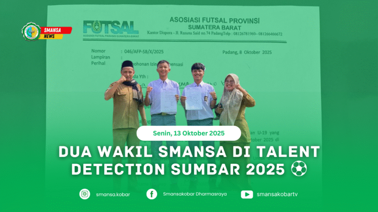 Kabar membanggakan datang dari SMAN 1 Koto Baru. Dua siswa berbakat, Afriliano Saputra dan Muhammad Ibrahim, berhasil lolos seleksi tingkat kabupaten dan akan mewakili Kabupaten Dharmasraya dalam ajang Talent Detection Futsal U-16 dan U-19 yang diselenggarakan oleh Asosiasi Futsal Provinsi…